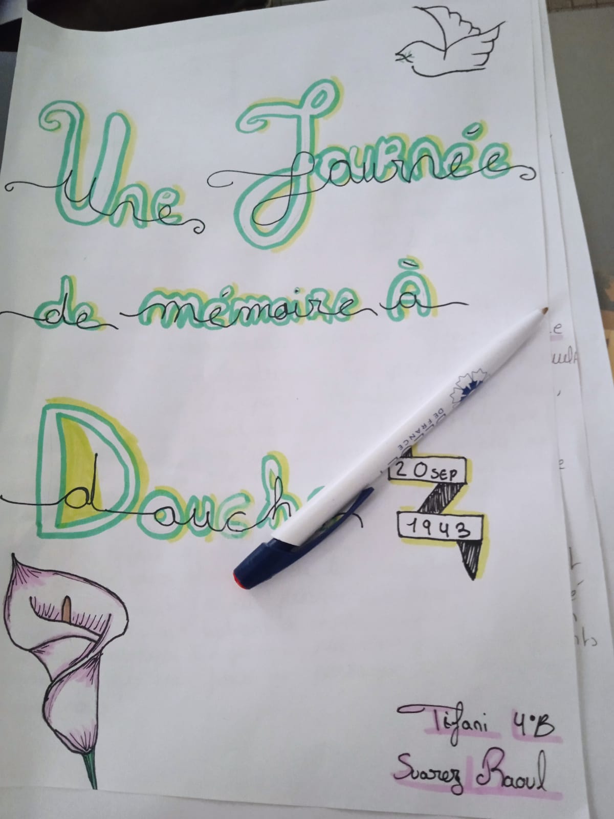 "Nous sommes allés au maquis Bir-Hakeim à DOUCH pour commémorer les jeunes soldats morts là-bas pour leur pays à cause des nazis. Notamment Jean-Marie Allex et Alphonse Landrieux.